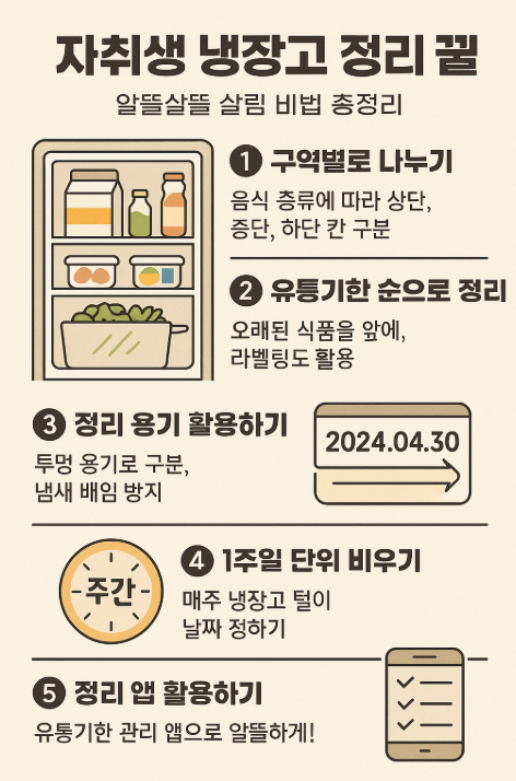 자취를 시작하면 꼭 마주하게 되는 현실, 바로 '냉장고 정리'입니다. 처음엔 몇 개 안 되는 식재료로 시작했지만, 어느새 유통기한 지난 음식과 먹다 남은 반찬이 가득 차 있는 경험, 자취생이라면 누구나 겪어봤을 거예요.